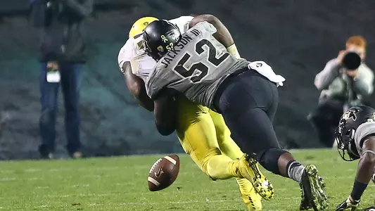 AT COLORADO: 2017 (Sr.)—He played in all 12 games, starting 11 (came off the bench at Washington State) … He earned second-team All-Colorado honors from the state’s NFF chapter … The coaching staff presented him with the Defensive Trench Award at the team’s senior banquet, recognizing him with the best play on the defensive line … Finished fifth on the team with 60 tackles (46 solo), which included team-highs of 11 tackles for loss and 5½ quarterback sacks … It was the most tackles by a CU defensive lineman since 2012 (62 by Will Pericak) … Was in for 794 snaps from scrimmage (out of 885, which included one 2-point play), with that 89.7 percent of snaps played the second most by a defensive lineman since 1987, when CU started tracking play counts (just behind 90.8 by Curt Koch in ’87) … He had three sacks against Texas State, the most by a Buffalo in seven years (Josh Hartigan had three versus Kansas State in 2010); it was the first and only multi-sack game of his career … Also had three third down stops (two on fourth downs) and four quarterback hurries … He had a career-high eight tackles against both Colorado State and Texas State, and posted five or more tackles in six games over the course of the year … He was nominated for the FBS Football HERO of the Week! By Hero Sports for his performance against Texas State (49 snaps, eight tackles, six solo and the three sacks) … He had one sack, another tackle for a loss and six total tackles while playing in 53 of the 60 snaps from scrimmage against No. 7 Washington in week four … He posted six tackles (five solo) and one third down stop against Southern California in his final game at Folsom Field.