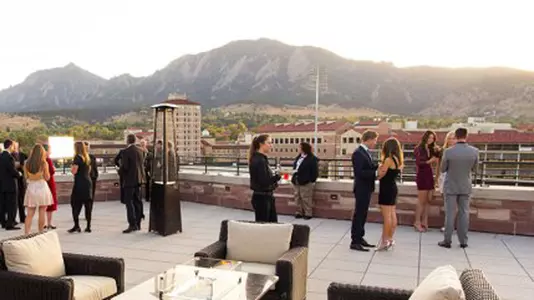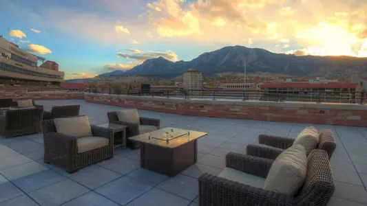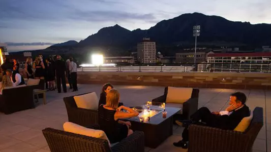 Located atop the newly constructed Champions Center facility in the northeast corner of Folsom Field, the Rooftop Terrace Club provides breathtaking panoramic views of Boulder’s signature Flatirons mountain range.