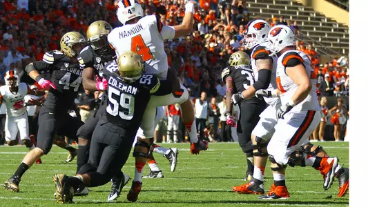 AT COLORADO: 2017 (Sr.)—He played in 10 games (no starts), finishing his CU career with 41 games played (two starts) … He had seven solo tackles on the year in 118 snaps from scrimmage, with two passes broken up and four third down stops, three of latter against Northern Colorado (one tackle and both PBUs) … Played in a season-high 23 snaps in the win at Oregon State (one solo stop) … After recording one tackle for no gain and recording a third down stop at Washington State in 13 snaps, he missed the next two games with an ankle injury he sustained against the Cougars … Returned for the senior day game against Southern California and played 11 snaps on defense (one tackle), and then closed his career with two tackles at Utah.