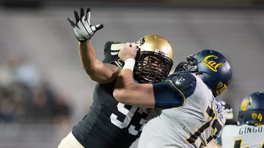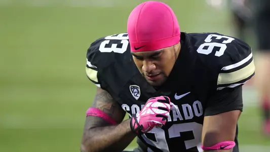 2015 (Jr.-RS)—He played in all 13 games, including a pair of starts (against Southern California and at Utah) and was in for 331 snaps from scrimmage. He racked up 33 tackles, 19 of the solo variety, five for losses including three quarterback sacks. He had four third down stops, four pressures and a tackle for zero; his biggest play of the season came at UCLA, when he recovered a fumble and returned it 33 yards for a touchdown, pulling CU to within 28-23 early in the fourth quarter. He had a season-high with six tackles against both Oregon State (five solo) and USC (four unassisted). He rejoined the team for the spring semester, and had bulked up by 15 pounds since he last played in 2013. He had a tremendous spring with 12 tackles (11 solo, three quarterback sacks) in the four main spring scrimmages.