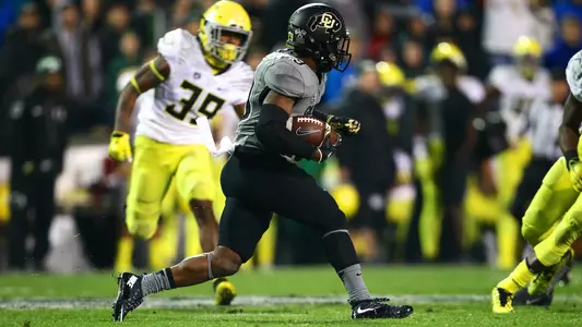 2015 (Soph.)—He saw action in 11 games, including three starts (UCLA, Stanford, Washington State); he missed the first two games of the season … Lined up at both tailback and receiver, he finished third on the team in rushing with 49 attempts for 286 yards for a team-best 5.83 yards per carry … Top game came against Nicholls State, when he had 103 yards on 10 carries and a touchdown (a 59-yard scamper) … His other scores came against UCLA, when he gained 62 yards on 13 tries, and versus Stanford (17 yards) … Also caught 26 passes for 128 yards (no TDs) and earned 21 first downs, 14 rushing and seven receiving, one of just two players with at least seven of each … Led the team in kickoff returns with 22 for 540 yards, an average of 24.5 per … He was fifth in the Pac-12 and 32nd in the nation; the 540 yards were the 14th-most in a single season by a Buff … He caught six passes for 84 yards and a touchdown, with two rushes for 13 yards and a score in the four main spring scrimmages.