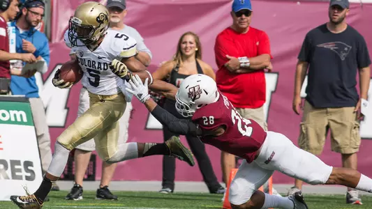 2014 (Fr.)—He worked his way into the lineup from the get-go, playing in all 12 games including 10 starts; in fact, he became just the fifth true freshman to start a season opener on offense at Colorado, and only the second to do so at receiver ... In earning the CU’s Freshman Male Athlete of the Year Award (all sports) and the team’s Lee Willard Award as the outstanding freshman on offense, he set five frosh records, most notably the record for season receptions with 50; he gained 486 yards and scored four touchdowns in averaging 9.7 yards per catch ... He also tied the CU record for the most receptions in a first game of a career (eight versus Colorado State) as well as in the first two games (14); his 21 catches over his first three games did set the school mark ... He had 46 yards against CSU, also a first game freshman high, and his 75-yard reception from Sefo Liufau for a touchdown to open the Arizona game was the second longest catch by a freshman in CU history (and also was the quickest-ever score by CU in a game: only 11 seconds in) ... Top games came against Arizona (five catches for 94 yards, one touchdown), Massachusetts (6-93, 1 TD), Utah (4-69) and Oregon State (4-44); his other touchdowns came against Arizona State and USC ... He also had four rushes for 24 yards and returned six punts for 27 more, giving him 537 all-purpose yards for the year ... He completed a pass for 21 yards (to D.D. Goodson against UCLA), and earned 24 first downs on the year (22 receiving, one rushing, one passing).