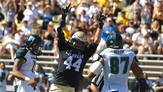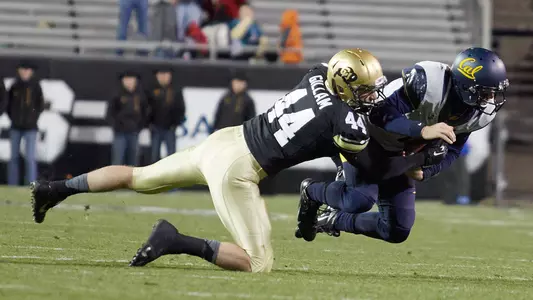 2016 (Jr.-RS)—He played in all 14 games including the Alamo Bowl (no starts), as the plan was to ease him back into game action coming off a pair of knee surgeries and two injury-hampered seasons. He was thus awarded the Tyronee "Tiger" Bussey Award given to a team member who provided an inspiration in the face of physical adversity. His 66 tackles (47 solo) were the most of any non-starter on the team, and he played in 393 snaps on the season, 338 over the last nine games after only 55 in the first four. His four sacks tied for the third-most on the team and he had six tackles for losses overall. He was credited with five third-down stops, seven quarterback hurries, three pass breakups and he also forced and recovered one fumble on the season. Against Washington in the Pac-12 Championship game, he was credited with a season-high 11 tackles (10 unassisted), his first double-digit tackle game since 2014. He posted five or more tackles in 10 games, doing so in 10 straight weeks before the bowl game. He made a big impact in the win over Arizona State, a game in which he had five tackles in 31 plays, a sack as well as three quarterback hurries and on one of those his bone-jarring hit on the quarterback caused an interception. After the bye week he posted six tackles, a third-down stop and one pass breakup in the 20-10 win over UCLA. In just 16 plays on defense in a week four win at Oregon, he was credited with six tackles that included one third down stop. The very next week he posted seven tackles with one quarterback hurry and one pass breakup in a 47-6 win over Oregon State. In 30 snaps at USC, he had five tackles and a sack in which he forced a fumble (which CU converted to a third quarter touchdown pulling the Buffs to within 14-7). In the bowl game against Oklahoma State, he had three tackles (two solo). He was a preseason fourth-team All-Pac-12 performer by both Athlon Sports and Phil Steele’s College Football, with the latter ranking him as the No. 26 inside linebacker in the country.