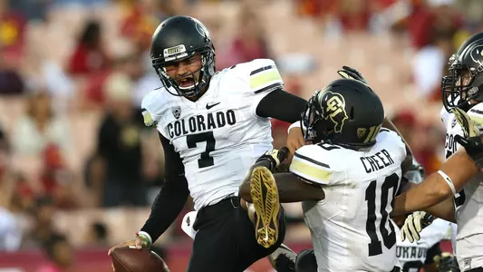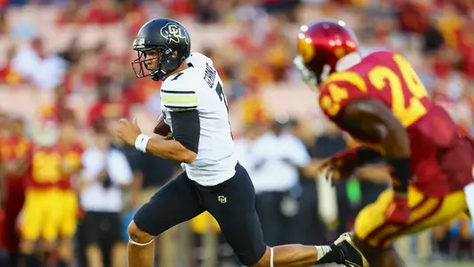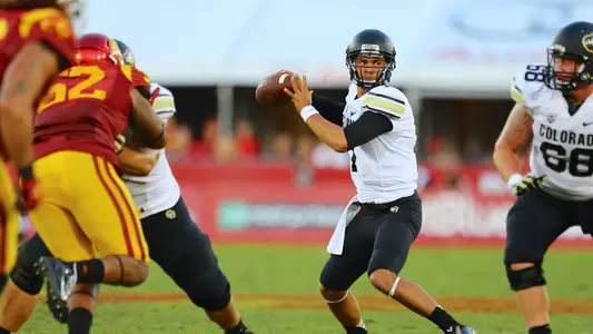 2015 (Jr.)—He appeared in three games (Massachusetts, Nicholls State, Utah) in completing 12-of-24 passes for 116 yards and a touchdown, the latter the first of his career which he completed to Phillip Lindsay in the Utah game (it covered 16 yards). He also threw his first career interception, which came after his first 53 pass attempts. In the four main spring scrimmages, he completed 35-of-58 passes for 345 yards and three touchdowns. He won the Iron Buffalo Award for the quarterbacks during spring practice, which recognizes hard work, dedication, toughness and total lifting performance.