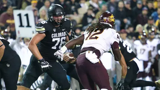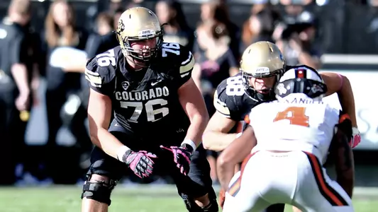 2016 (Jr.-RS)—He started 12 games at left offensive tackle plus the Alamo Bowl (he missed the Arizona game due to illness), grading out as CU’s top offensive lineman ... Earned second-team All-Pac-12 honors from the league coaches, was a third-team pick of Phil Steele’s College Football and a first-team All-Colorado team pick by the NFF College Football Hall of Fame Colorado Chapter ... Was the recipient of CU's Offensive Trench Award, which the coaches present to the most outstanding offensive lineman ... In playing the second-most snaps on offense (896), he was credited with a team-high 20 knockdown blocks, 14 touchdown blocks (direct), 15 perfect plays on passing touchdowns while only allowing just a half sack and nine pressures on the season (CU attempted 431 passes on the year) … The Arizona State and Washington Stage games were his two best, grading out to a 2.23 score by the coaches, the best two games by any lineman on the year … Phil Steele’s College Football ranked him as the No. 41 offensive tackle in the nation entering the year, despite coming off a season-ending injury in 2015 when he played in just two games … He served as one of five team captains for the 2016 season by a vote of his teammates.