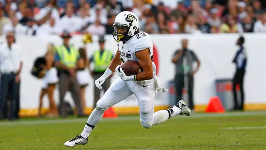 2014 (Fr.-RS)— He saw action in all 12 games on offense and special teams (no starts); in amassing 1,358 all-purpose yards, he shattered the previous freshman mark by over 400 yards (947 by Lamont Warren in 1991); it was also the 14th-most overall by any player in any season ... Averaged 10.5 yards for every touch on the year (a team-high 129) … He had the third-most kickoff return yards in a single-season in school history with 849, averaging 23.6 yards per return (long of 51); that ranked him eighth in the Pac-12 and 50th in the nation … Finished fourth on the team in rushing with 391 yards on 79 carries, a healthy 4.95 yards per carry, and he also caught 14 passes for 118 yards (9.8 per) ... In all, he earned 17 first downs (14 rushing, three receiving), with his 12 rushes of 10 yards or longer second best on the team ... Top game running ball came at Arizona (17 carries, 114 yards with his season longest run of 36), with other top efforts all on the road as well, against USC (10-55), Oregon (11-49) and Massachusetts (7-41) ... He had 207 all-purpose yards against Oregon, setting a CU single-game record for a redshirt freshman (142 via kickoff return, 49 rushing and 26 receiving on 22 total touches) ... Received plenty of reps in the spring, with 22 rushes for 77 yards in the four main spring scrimmages (with five receptions for 44 yards and a touchdown) ... The coaches selected him as the recipient of the Fred Casotti Award for the spring, presented to the most improved running back.