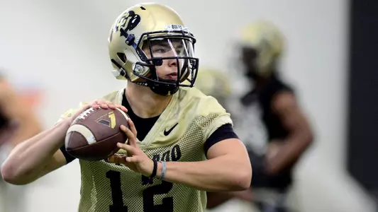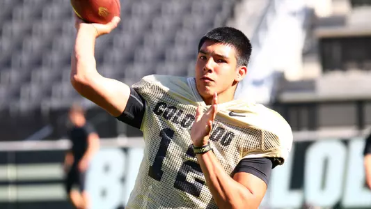 2016 (Fr.-RS)—He played in 10 games along with the Alamo Bowl, including three starts (Oregon, Oregon State, USC; he was 2-1 as the starter) … Named a co-recipient of the Lee Willard Award, presented annually by the coaches to the outstanding freshman … Threw for 1,017 yards with nine touchdowns against four interceptions and completed 60.3 percent of his passes (79-of-131) on the year … Passer rating of 142.1 was the seventh-highest in school history (75 or more pass attempts) and the highest ever by a freshman … Also rushed for 231 yards with one touchdown, giving him 1,248 yards of total offense … Became the first known player in CU history to throw a touchdown on his first career passing attempt since Joe Dowler in 1959, as he connected with Kabion Ento on a 69-yard TD pass in the second quarter against Idaho State ... Finished that game going 6-of-10 passing for 117 yards and two touchdowns … Drew his first career start at Oregon and put in a record-setting performance in leading the Buffs to a 41-38 win while going on to collect Pac-12 Offensive Player of the Week accolades in addition to six other weekly honors (Rose Bowl, NFF Chapter State of Colorado, College Sports Madness, Allstate Sugar Bowl Manning Star of the Week, Davey O’Brien Award “Great Eight” and CU Athlete of the Week), plus he was the collegesportsmadness.com national offensive player of the week … In the win versus the Ducks he threw for 333 yards and three touchdowns while running for 135 yards and another score, becoming the first player in Colorado history to throw for over 300 yards and rush for 100 in the same game … His passing yardage against Oregon was the fourth-highest in a quarterback’s first start at CU and his rushing yardage and total offense (468) output were the most in a debut by a starting QB … At one point in the first half he completed 14 straight passes, matching the CU single-game record for consecutive completions (Koy Detmer at Colorado State in 1996) … He followed up that performance the next week at home against Oregon State when he led the Buffs to a 47-6 win, the programs largest conference victory since 1992 … For the Oregon State game the Earl Campbell-Tyler Rose Award tabbed him as honorable mention for its national player of the week … He was 19-of-27 passing for 293 yards and three touchdowns (no interceptions) versus the Beavers … His third and final start came at USC when he was 25-of-40 passing for 197 yards with one touchdown and one interception ... In the Pac-12 Championship game against No. 4 Washington he was inserted into the lineup in place of the injured Sefo Liufau and led the Buffaloes on a seven-play, 55-yard scoring drive in the first quarter to tie that game up at seven … He was 2-for-3 on the drive for 34 yards, the long being a 21-yard completion to Shay Fields down to the UW eight-yard line to set up the tying score … He was the recipient of the Fred Casotti Award, as selected by the coaches for being the most improved offensive back during spring practices. He added 20 pounds to his frame between his true and redshirt frosh seasons.