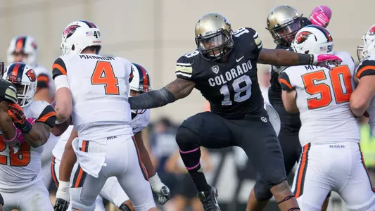 AT COLORADO: 2017 (Sr.)—He appeared in 10 games with five starts … Closed his career like he opened, being CU’s first true two-way player with more than 100 snaps on both sides of the line of scrimmage for the second time in his career (and the first at CU to do so since the platoon era ended in 1964) … He was in for 506 total plays: 266 on offense, 147 on defense and 93 on special teams (punt and field goal/PAT units) … Primarily used on offense as a blocking tight end, he did have one reception for 9 yards (at Washington State) … On defense, he recorded 11 tackles (eight solo), with a quarterback sack, a tackle for zero, a pressure and a pass broken up … Recorded two tackles in 17 snaps on defense against Northern Colorado in his first appearance on the defensive side of the ball since 2014 (his redshirt freshman season) … He matched his career-high with three tackles on two occasions, at Oregon State (two solo) and versus California (all solo, when he had his sack) … He earned four special team points on the strength of two solo tackles, a fumble recovery (which he had at Washington State) and a touchdown save … Named a team captain for the second consecutive season, he became one of 10 Buffs in program history to serve as captain twice ... He was CU’s nominee for the Paul Hornung Award that honors the most versatile player (one of 46 players on official watch list) … The coaches named him as the team’s Jim Hansen Award winner in the spring for outstanding academics.