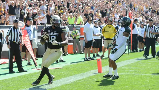 2014 (Fr.-RS)—He played in all 12 games, including one start (Hawai’i), playing all 12 on offense at fullback and tight end and in 10 on defense at defensive end ... Became the first Buff to appear on both sides of the ball in the same game since 2005 (John Guydon on both the offensive and defensive lines against Texas) ... Caught five passes for 35 yards and three touchdowns, with five rushes for four yards and another score as he was in for 101 offensive plays from scrimmage ... He was the first CU player that year to score touchdowns in the same game by rushing and receiving when he did so at California in CU’s 59-56 double overtime loss ... (His other two receiving TDs came against Hawai’i and Washington.) … On defense, he was in for 195 snaps and recorded 15 tackles (four solo, one for a loss, two for zero gains), along with two third down stops, three quarterback hurries and a pass broken up ... Had a season/career-high three tackles against UCLA and two in five other games; he added another tackle on special teams coverage duty ... He missed all of spring practice as he continued rehabilitation following reconstructive surgery (meniscus) in the offseason.