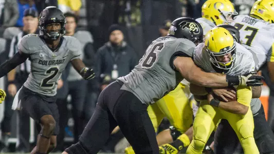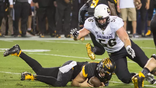 2018 (Sr.)—He saw action rotating into the lineup for the first six games of the year (no starts), but suffered a knee injury early against USC (torn meniscus and ligaments) and was lost for the remainder of the year (he was hurt on just his second play versus the Trojans) … He was in for a total of 107 snaps, racking up 12 tackles (nine solo, three for losses including two quarterback sacks) … He was in on four tackles for zero gain (thus seven of his 12 stops were at or behind the line of scrimmage); along with three third down stops, two quarterback hurries and a pass broken up … He had four tackles (three solo) against Colorado State, New Hampshire and Arizona State, with his sacks against the Rams and Sun Devils … He was presented with the Jim Hansen Award following spring practices, an award given to a Buff for displaying an outstanding academic performance.
