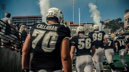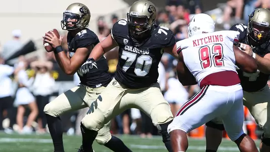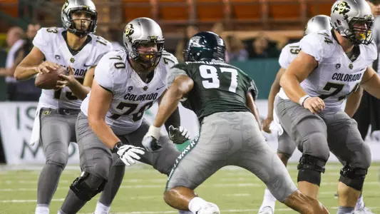 2014 (Soph.)—He saw action in one game at guard, playing 21 snaps at Southern California (he had eight “plus” plays and nine that were even for a game grade of 81.0 percent). He was ruled eligible to compete after transferring from Auburn in the offseason; the NCAA granted a waiver to the rule where a player must sit out a year (CU filed a waiver for him due to family reasons). He enrolled at CU in the summer, joining the team in late July and thus in time to have participated in August drills.