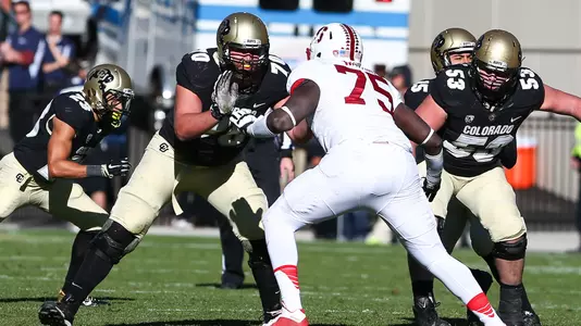 AT COLORADO: 2016 (Sr.)—He played in all 14 games, including the Alamo Bowl as well as one start (at Arizona, where he played the entire game – 73 snaps in all). He was in for 152 snaps overall on offense, appearing in six different games, and was credited with three touchdown blocks (direct), three perfect plays on passing touchdowns and one knockdown block. He graded out with a 2.38 figure (top game grade was 2.26 against Oregon State when he was in for 21 plays). He was in for all 68 snaps on the punt team (one of the protectors) and played an additional three snaps on the field goal/PAT unit.